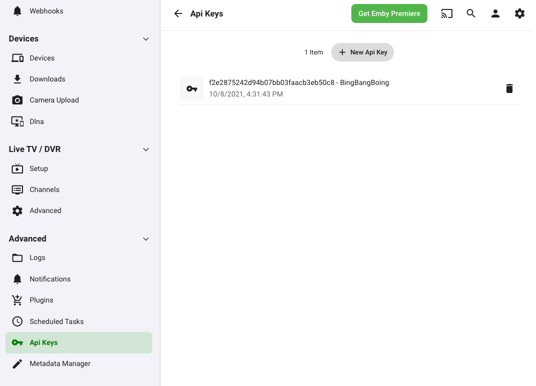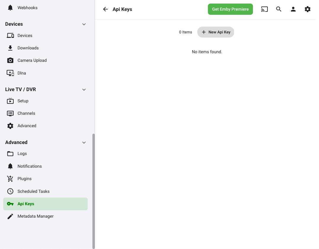 1. Click + New API Key.