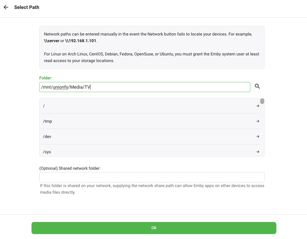 2. Type in or choose /mnt/unionfs/Media/TV. Click OK.