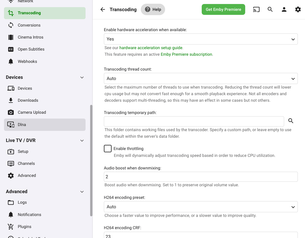 2. Go to Transcoding.
